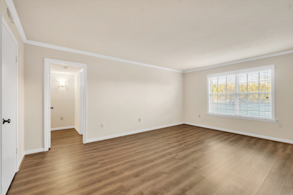 Plank flooring in living room & dining rooms, carpet in bedroom & hallway