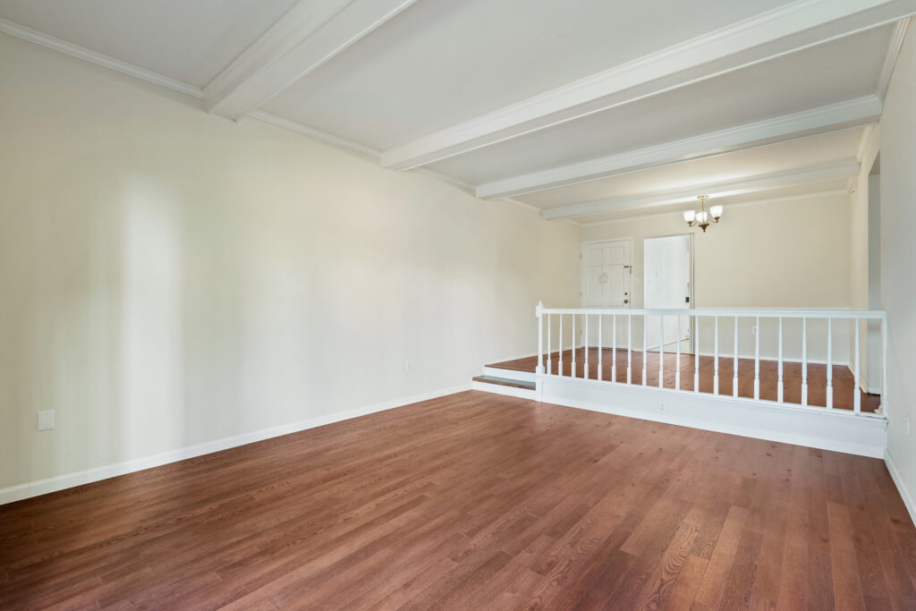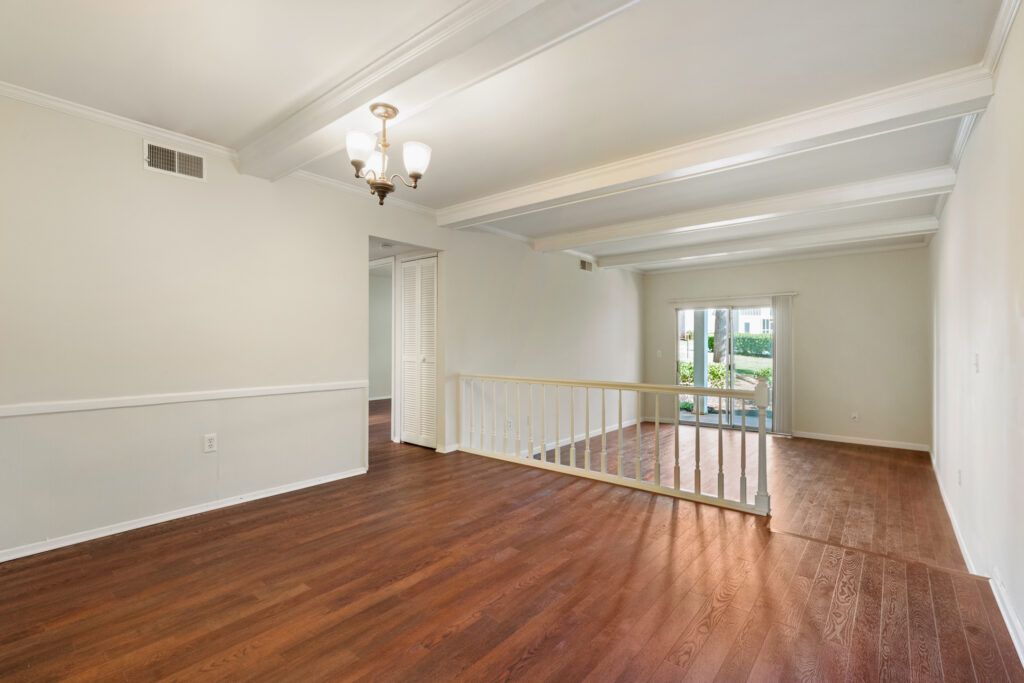 Large living room, dining room, and kitchen